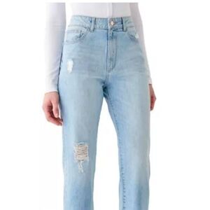 Discover the perfect blend of style and comfort with the DL1961 Jerry Ripped High Waist Vintage Crop Jeans. These chic blue jeans feature a high rise that flatters your silhouette, while the subtle distressing adds a touch of vintage charm. Designed for all seasons, they offer a regular fit that feels just right, making them ideal for casual outings or chic gatherings. The light fabric wash and 5-pocket design ensure both style and functionality. In great pre-owned condition, these jeans are ready to become your new favorite. Size: 31.