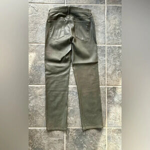 Winter Green is a wax coated, earth toned green that combines the comfort of soft, stretch denim with a leather-like look. It features tonal stitching, faux front pockets, light gold hardware and a clean hem.