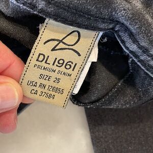 DL1961 - 360 Comfort Black Denim Fitted Skinny Jeans in EUC. Comfortable fit with a little stretch. Two pockets on back, two fake pockets on front. Black denim, fitted leg. Size -25. Approx. Inseam -27.5" Photos are part of the description, zoom to see the detailed condition of these fitted black denim jeans. Feel free to ask questions. Available in Neimann Marcus & Bloomingdales