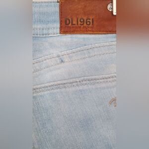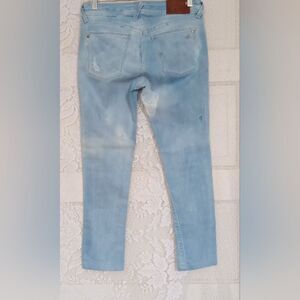 Premium denim, distressed design in front, on front and back pockets, skinny fit, good stretch, 55% cotton, 45% polyester, measures 32 inches long, 24 inch inseam, size 26, NWOT