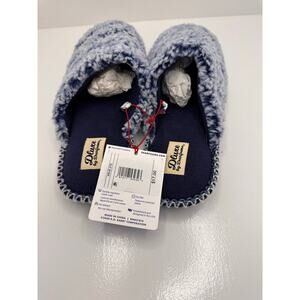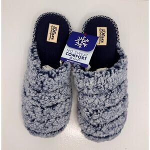 DLUXE by Dearfoams Vera Teddy Scuff Slippers Blue Memory Foam Size L 9-10 UNISEX