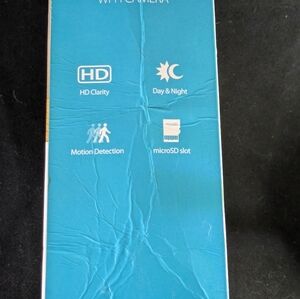 Enhance your home security with the D-Link White Security Camera. This sleek and modern camera offers reliable surveillance with its advanced features. Perfect for monitoring your space with ease. Item is New but the box has some wear and tear. Priced to sell quickly won't last.