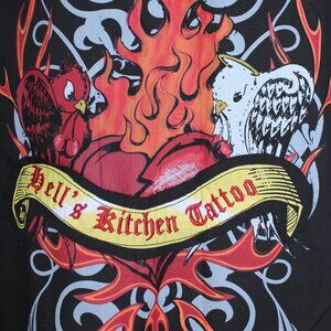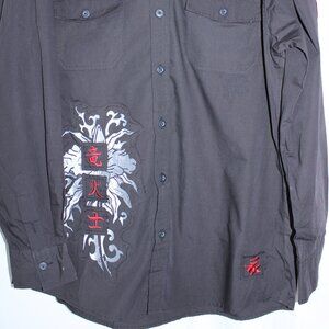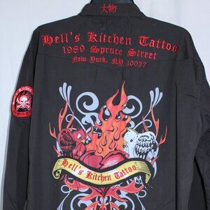 D-Lux Shirt Mens L Hell's Kitchen Tattoo Black Long Sleeve Button Skull Hearts