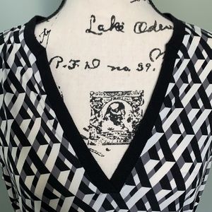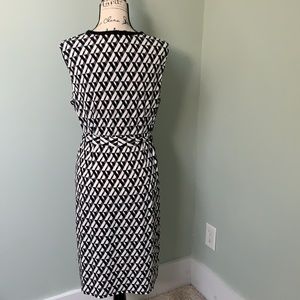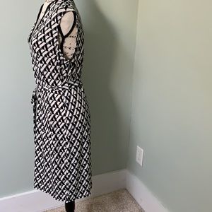DM CollectionArcadia Knit Dress size 14 with tie belt, black detail trim at v-neck.