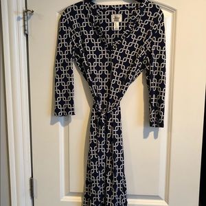 Super cute and comfortable V neck, tie waist, shift style dress. Polyester spandex knit. Pull over style. Worn maybe twice because I have own another very similar dress already!