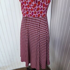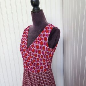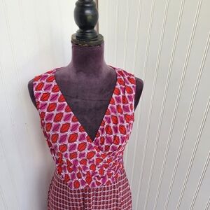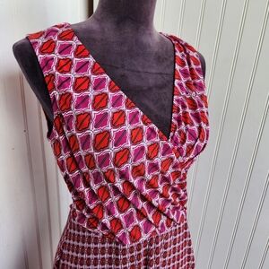 DM Collection Pink Purple Geo Print Faux V-Neck Wrap Dress Sleeveless Midi Sz 6