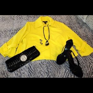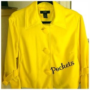 DM New York Women's Wide Collar shell blazer; Big buttons offer accents; Two front pockets. Gently worn. Stay warm with this stylish blazer!