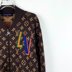 This Louis Vuitton x NBA bomber jacket features a monogram design with bold embroidered logos. Crafted from premium materials, it combines luxury and sporty elements seamlessly. Ideal for making a stylish statement.