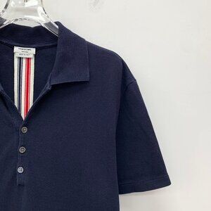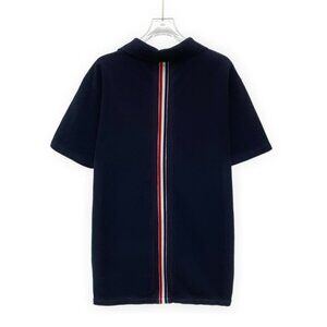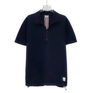 DM0356 Thom Browne tb dark blue back striped cotton lapel short-sleeved Polo shirt 4 L size two buttons less white