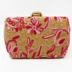 D'MARGEAUX NEW YORK | Pink Embroidered Floral Cork Clutch w/Crossbody Chain