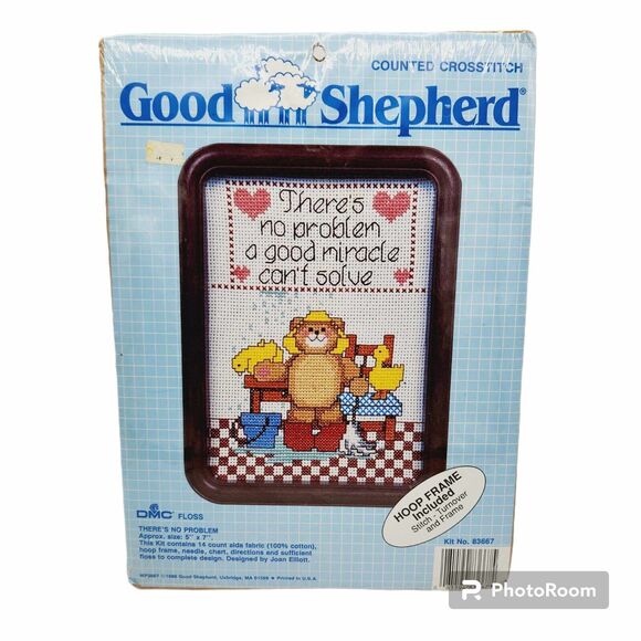 DMC Good Shepherd THERE'S NO PROBLEM 83667 Counted Cross Stitch Kit w/ Frame