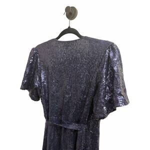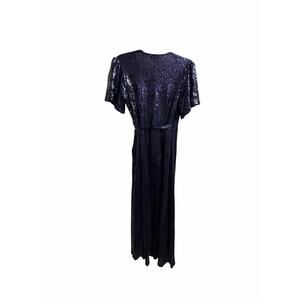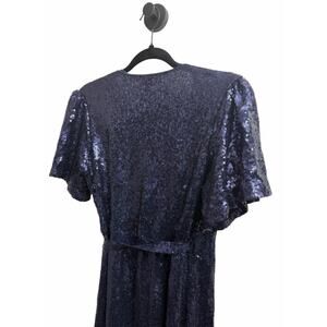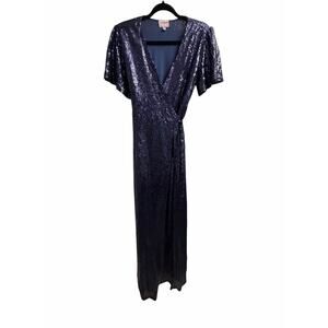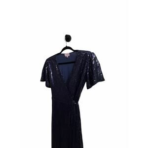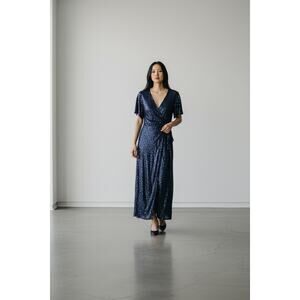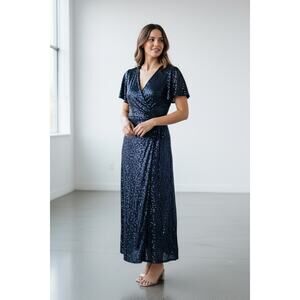 DMFashion Navy Sequin Wrap Maxi Dress Size Small Flutter Sleeve Formal Evening