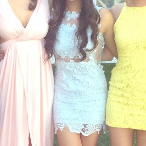 Beautiful dress from small boutique in New Jersey. Silver blue and all lace. Only worn twice and in very good condition.