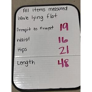 Items are listed by factory tag, but measurements are included. These are approximate measurements and may vary from tag size. Please review these prior to purchasing.