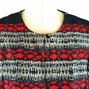 Red, black and khaki abstract print