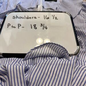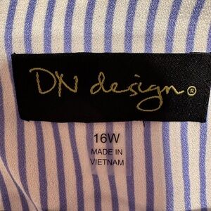 DN Design Women’s Blue & White striped chambray ruffled front dress. Sz 16W