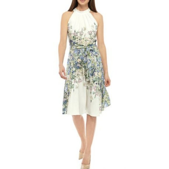 DN Designs Curvy Women's Halter Floral Tie Waist Dress