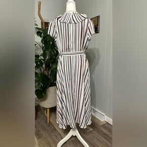 🛍️DN design multi color stripes dress with belt ties and ruffle top size 14