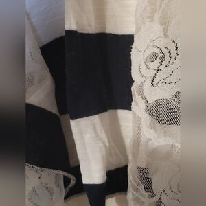 lace over navy blue and white stripes in front.