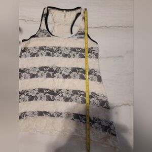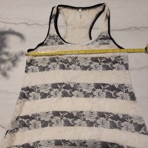 DNA Couture White Blue Striped Lace Roses Racerback Tank Top Large
