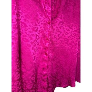 Women’s 3X DNA Couture magenta pink leopard print satin blouse