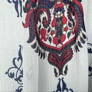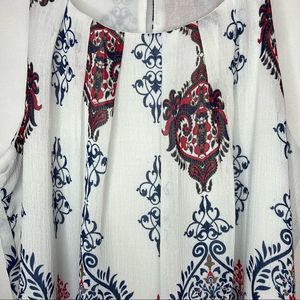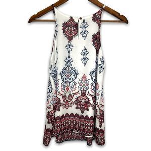 DNA Couture White Blue Pink Paisley Boho Pleated Tank Blouse Small