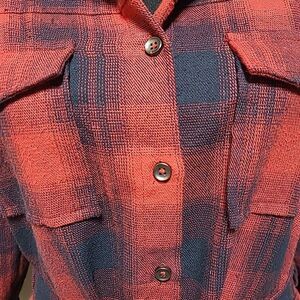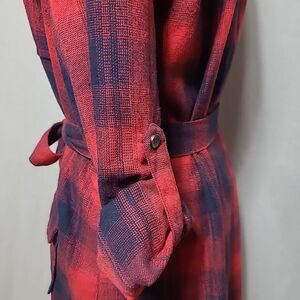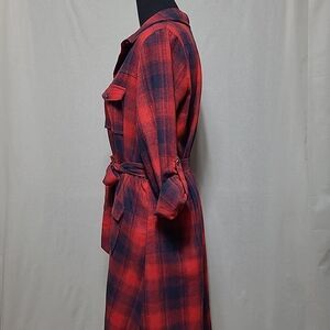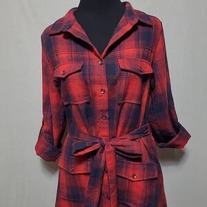 DNA Flannel Dress Large Red Black Tartan Plaid Roll Tab Sleeves Knee Length