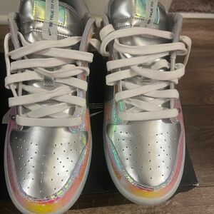 Silver reflective, DNA Nikes pride. gently worn still comes with a box. See pictures