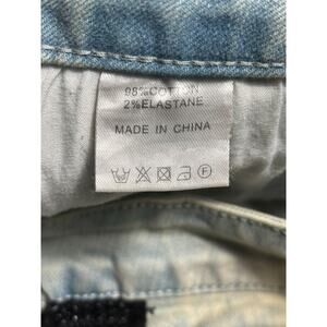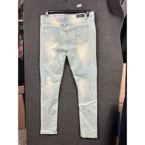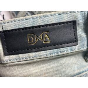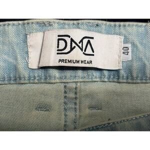 DNA Premium Jeans Mens 40 Light Wash Distressed Ripped Black Sequin Stripe Denim
