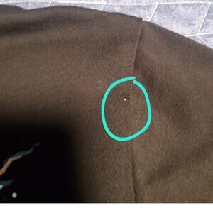 Small discoloration on the left shoulder, see circled pic. No other issues noted
