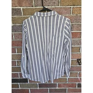 DNA Couture Womens Blouse Large White Collared Striped Long Sleeve Shirt Top