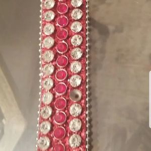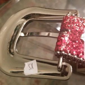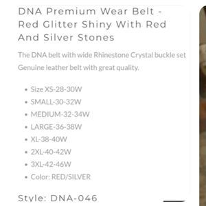 DNA PREMIUM WEAR BELT RED GLITTER W/RED & SILVER STONES. SZ. XS MISSING 1 STONE