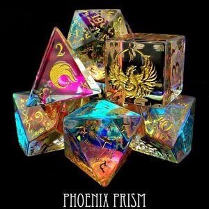 DND Dice Set - Phoenix Prism - 7 Exclusive Glass Dice -