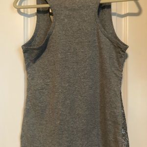 Silver sequin razor back tank top; 96% cotton and 4% spandex. Hand wash. Size small.