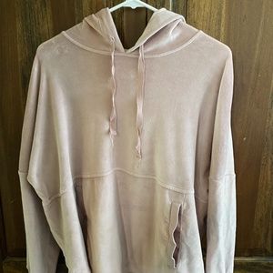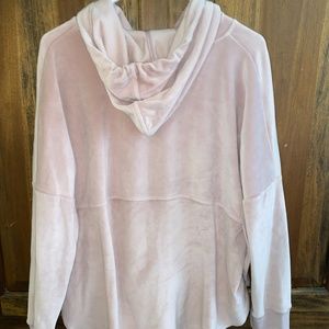light pink, super soft on inside and outside (velour on outside)
