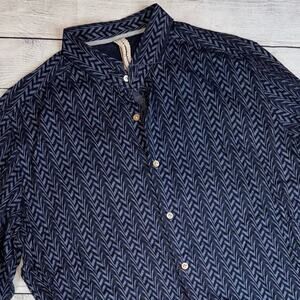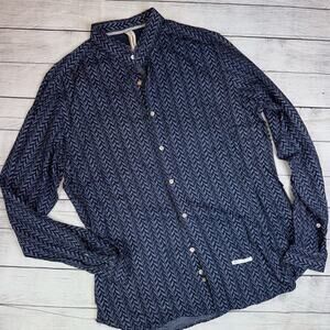 DNL Italian Menswear Chevron Patterned Buttoned Long Sleeve Shirt Blue 44 17.5