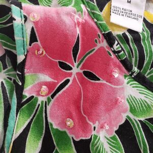 Summer is much more fun and relaxing in this Tropical floral print maxi dress. The flowers are adorned with matching sequins on the petals and side vents. Excellent LN (pre-loved) condition. No signs of garment distress.