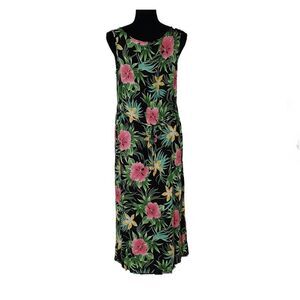 DNLA Sport Black Floral Tropical Print Vent Scoop Neck Sleeveless dress Size M