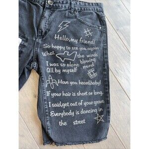 DNM Collection Men’s Distressed Graphic Black Short Jeans Size 40