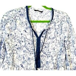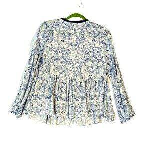 DNMX Top Women's M Peasant Boho Bell Sleeve Baby Doll Flounce Blue White