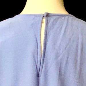 DO + BE brings you this sky blue flowy, bell-sleeved wonder that has peekaboo cutouts along both arms, around the midriff and but the cleavage. With a button clasp on the back of the neck.