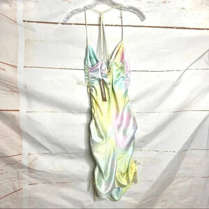New with tag, DO + BE Side Ruched Tie Dye Dress Size Medium Adjustable Straps Square Neck, multicolor.