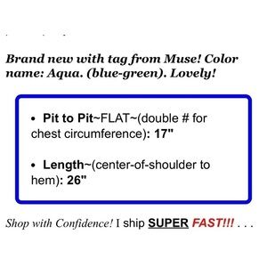 Brand new with tag from Muse! Color name: Aqua. (blue-green). Lovely!