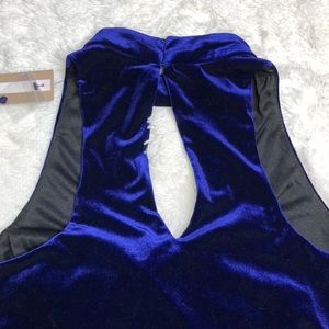 Sapphire blue V-neck swing dress in a velvet texture. Tags are still attached and the dress has never been worn. Purchased from Lulu’s online boutique at full price! First photo is shown on a model for idea of placement. Price negotiable. Size small!