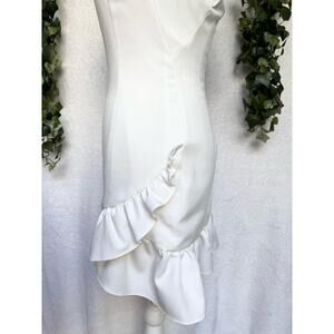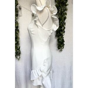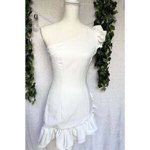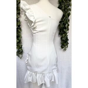 DO + BE White Ruffled One Sleeve Asymmetrical Mini Dress Small