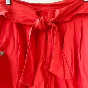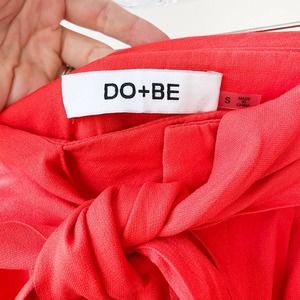 DO + BE Women's Bright Poppy Red Paperbag Waist Tie Shorts with Pockets sz S