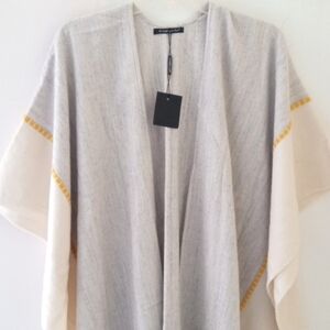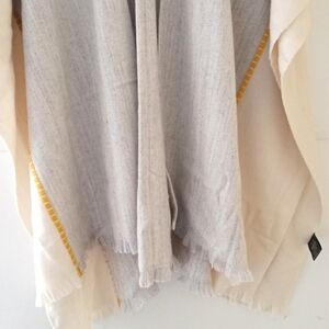 DO EVERYTHING IN LOVE GRAY CREAM GOLD WESTERN BOHO PONCHO SHAWL WRAP SZ OS NWT
