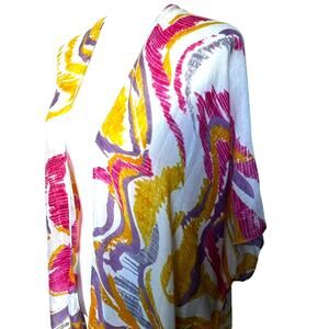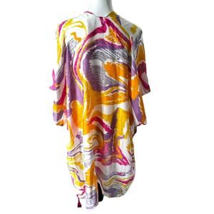 DO EVERYTHING IN LOVE NWT Pink Yellow Long Open Swim Cover Up Kaftan Kimono Boho