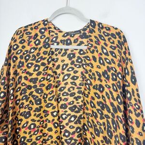 Adorable kimono shawl by Do Everything in Love. Short sleeves. Tan/orange base with black and red animal print. Perfect for fall and winter! Great condition. OSFM.