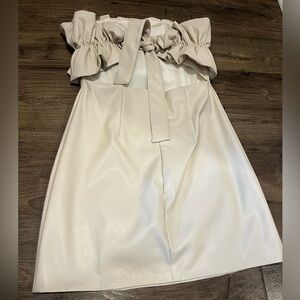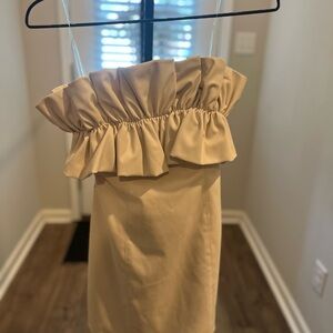 Chic mini dress with ruffle detail. Strapless. Perfect for any occasion.